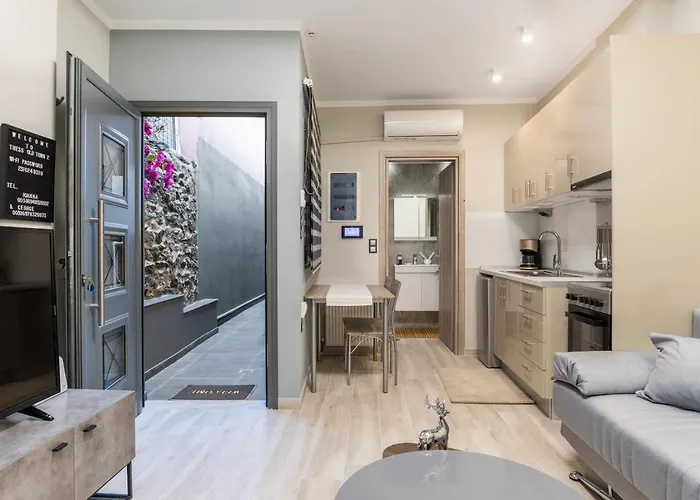 Eine komplette Küche mit einem Wasserkocher, einem Kühlschrank und einem Toaster wird Ihren Aufenthalt noch komfortabel machen. Die Gäste dieses Apartments können den Komfort von Ausstattung zur Kaffee- & Teezubereitung genießen. Zu den Restaurants Le Coq tail mix bar und KREONIDIS Tradional Greek Tavern mit sind es ca. 7 Gehminuten. Die nächstgelegene Bushaltestelle Plateia Paulou Mela befindet sich nicht weit weg von diesem Apartment.